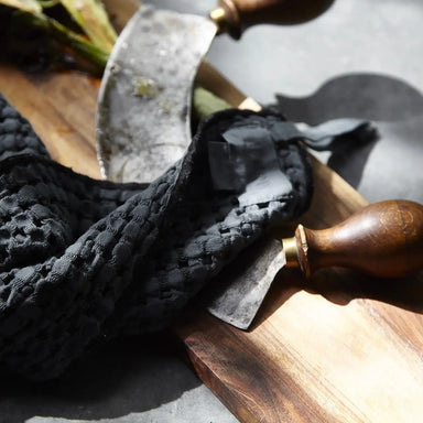 These handsome tea towels may double as hand towels. They sport a large honeycomb weave, a cotton hanging link, and a black twill finish. Dimension...