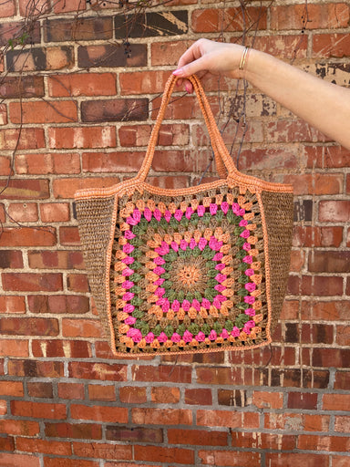 Hand Crocheted in Madagascar, this Summer tote is reminiscent of the crocheted Afghan throws of old. Add a little color and boho chic to any outfit...