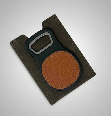 Made in Italy from bronze and embossed golf calfskin. Dimensions: 5.25"l. x 1.5"w.