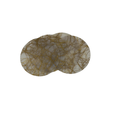 Meticulously handcrafted in antiqued brass, these coasters are rich in texture and global in design. Dimensions: 4" diameter Materials: 24k Gold P...