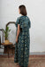 This floral block print peasant dress is ankle length and has nice, big pockets. We could see it styled for cooler weather with a chunky cardigan and boots. It looks super cute belted too!