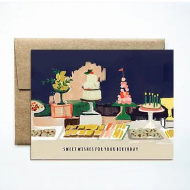 Hand drawn illustration on matte paper on one side and blank on the other side for writing a message. Metallic gold detailing on the front. 4" x 6"...