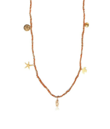 View full detailsHandmade in a Parisian workshop, each piece is one of a kind. Made with a variety of shells, stones, bakelite, vintage beads, colored cord and 18kt...