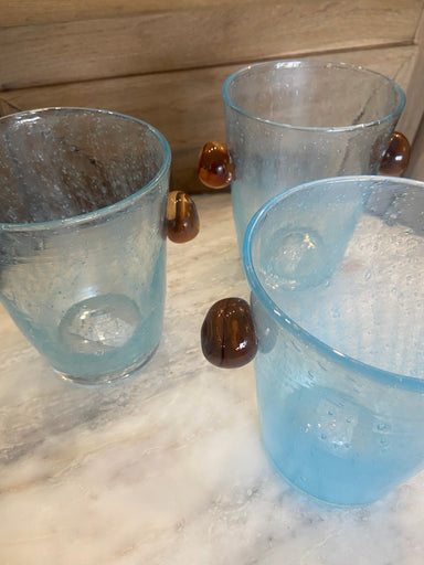 Dimensions: 4" diameter x 3.75" height Glassware with a terracotta brown ochre glaze Hand-blown glassware from Belgium Pictured with Cup Punch Larg...